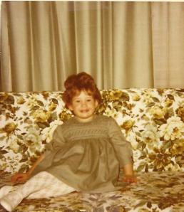 Terri, age 3 -- all dressed up and ready to party. If the couch doesn't absorb me first! 😉