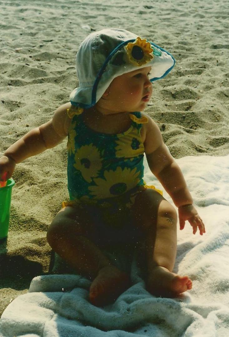 This photo never fails to make me smile. Taken in the summer of 1997, Catherine was just over a year old and not sure she wanted to TOUCH the sand.