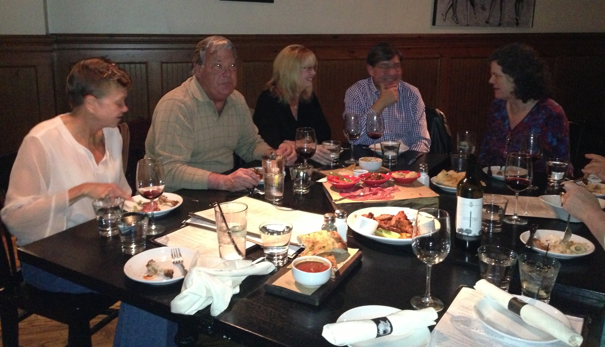 We gathered for dinner with Basil’s circle of closest school chums. It was a terrific evening — so nice to visit again with a couple of folks I met back at the 30th reunion and to meet a few others.