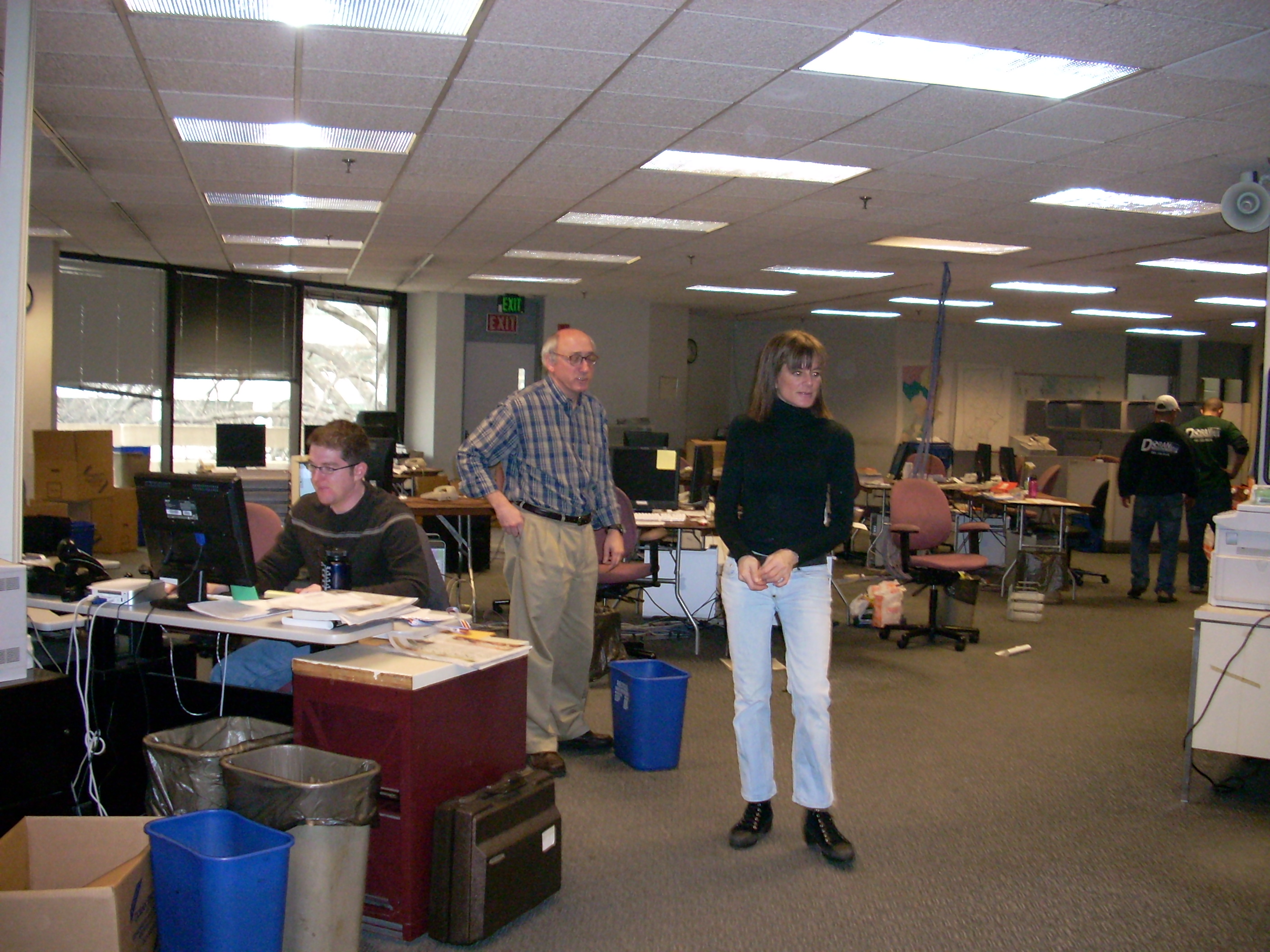 Jeff Morganteen, editor Joe Pisani and his administrative assistant, Susie Costaregni. Those are movers at the right rear.